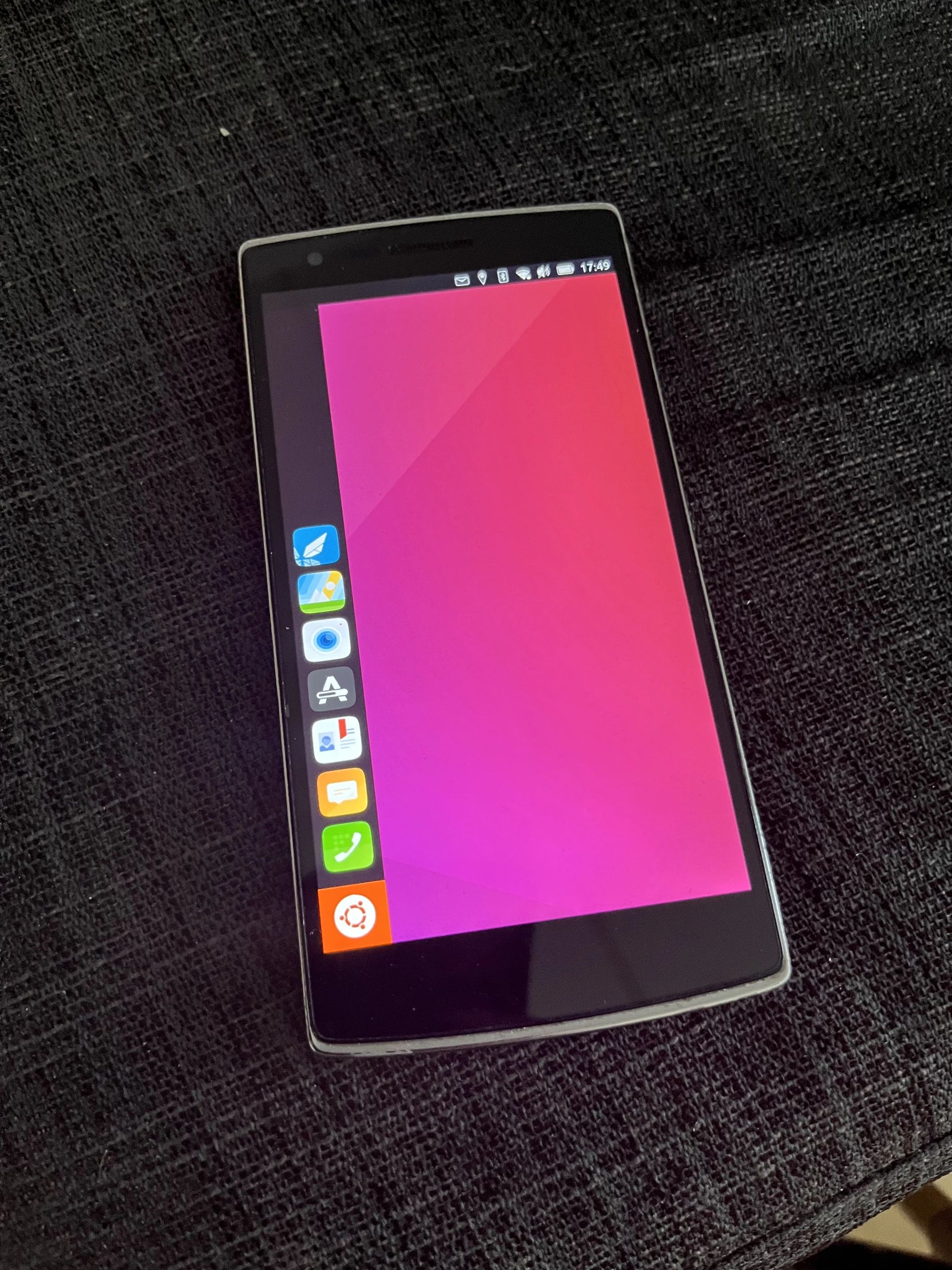 Ubuntu Touch på en OnePlus One fra 2014, lige efter boot.